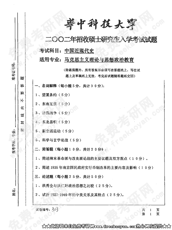 专业课考研经验 本站小编 FreeKaoyan 2018-01-22华中科技大学2002年考研真题-中外教育史