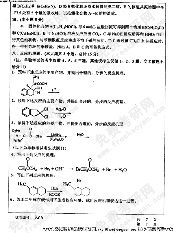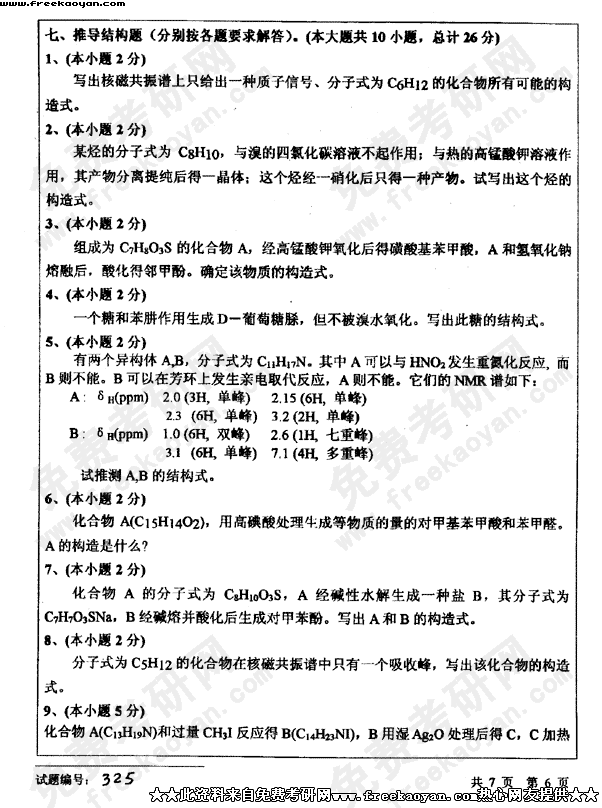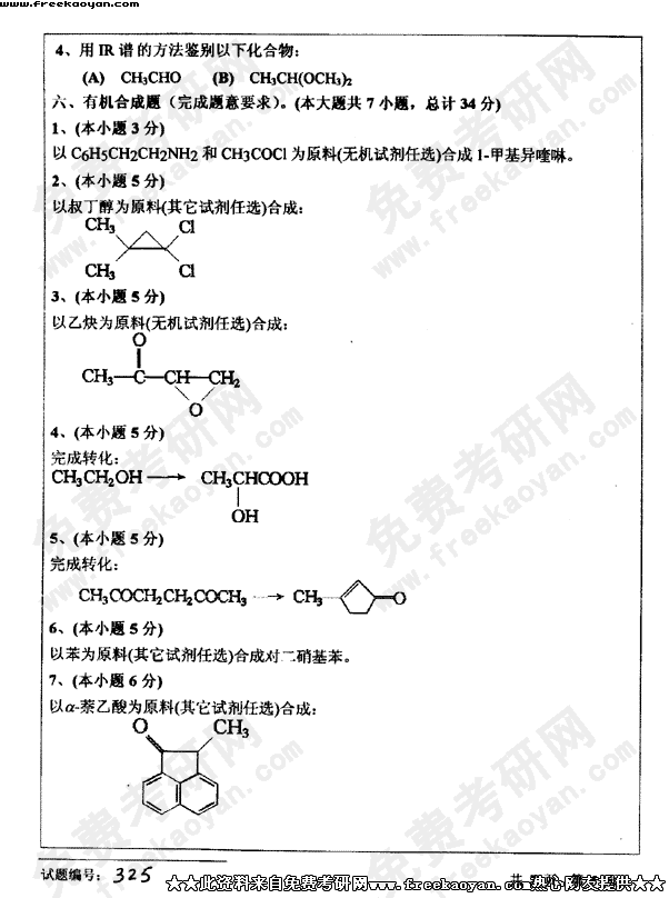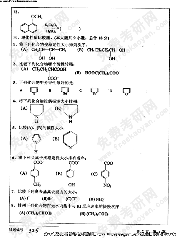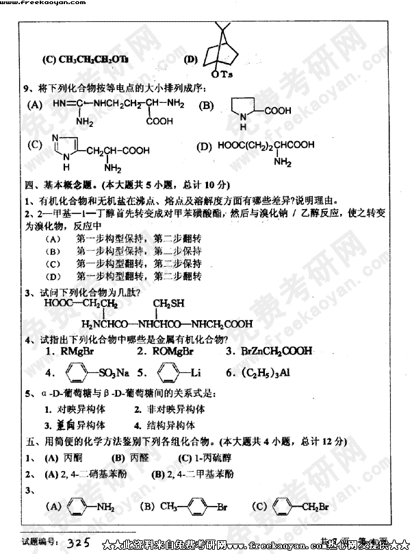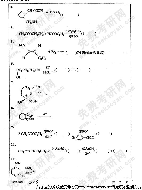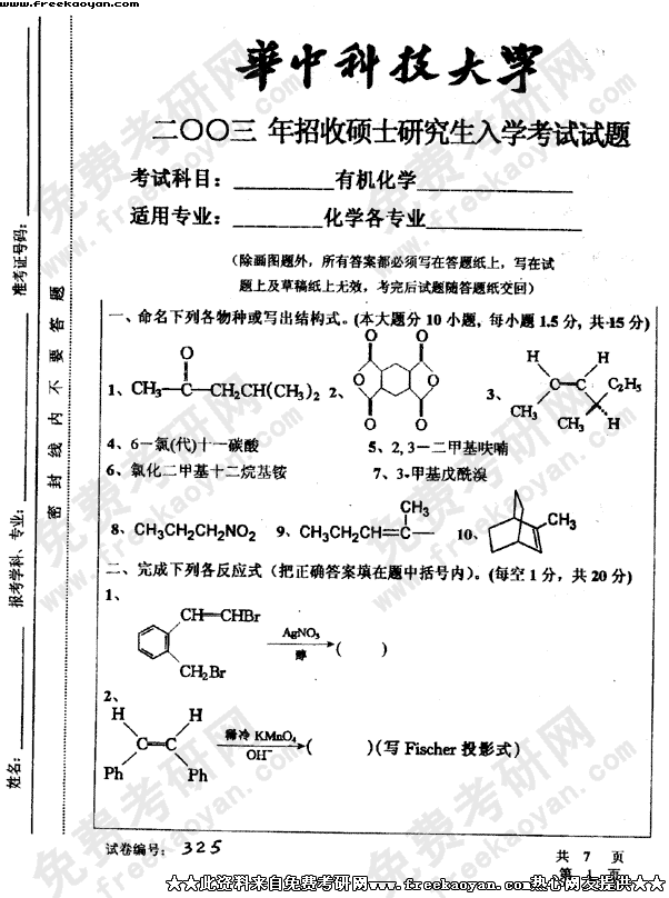 华中科技大学2003年考研真题-有机化学