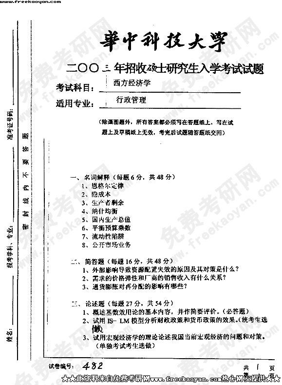专业课考研经验 本站小编 FreeKaoyan 2018-01-22华中科技大学2003年考研真题-行政管理学