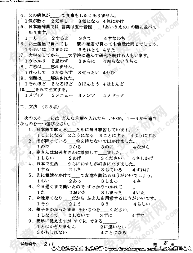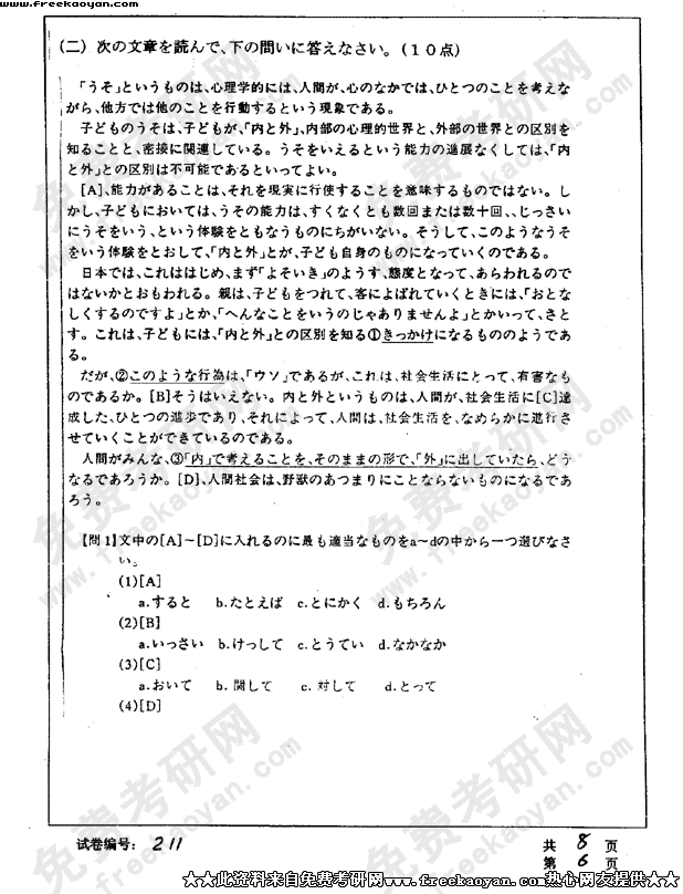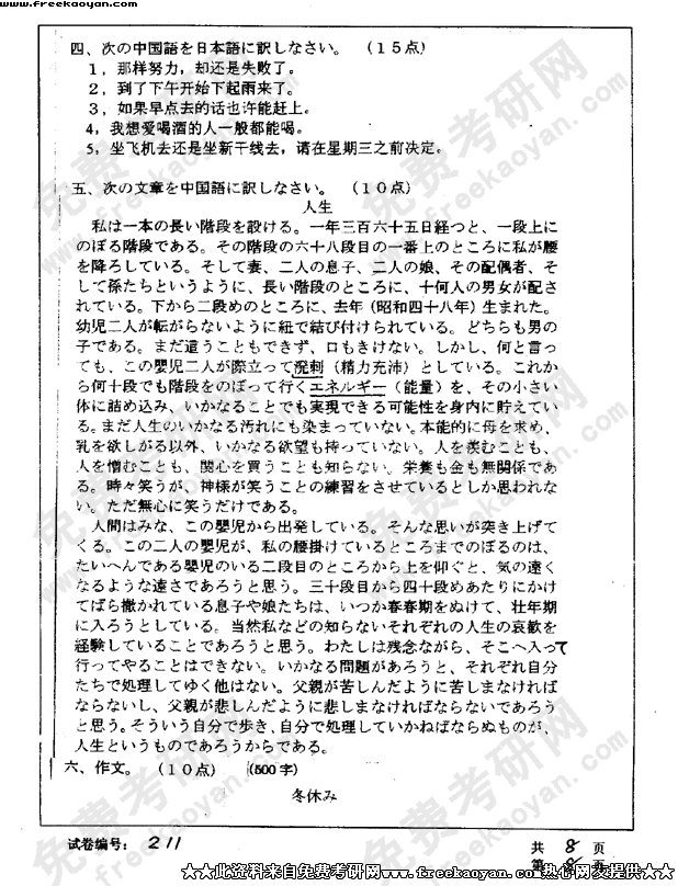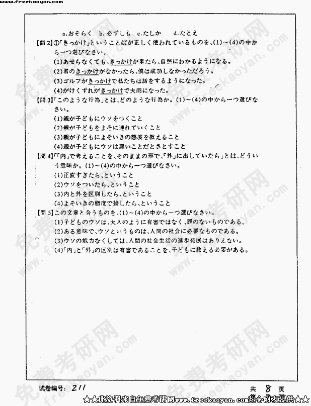 华中科技大学2003年考研真题-日语学基础与日语写作