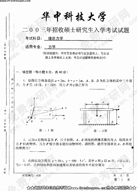 华中科技大学2003年考研真题-生物化学与分子生物学