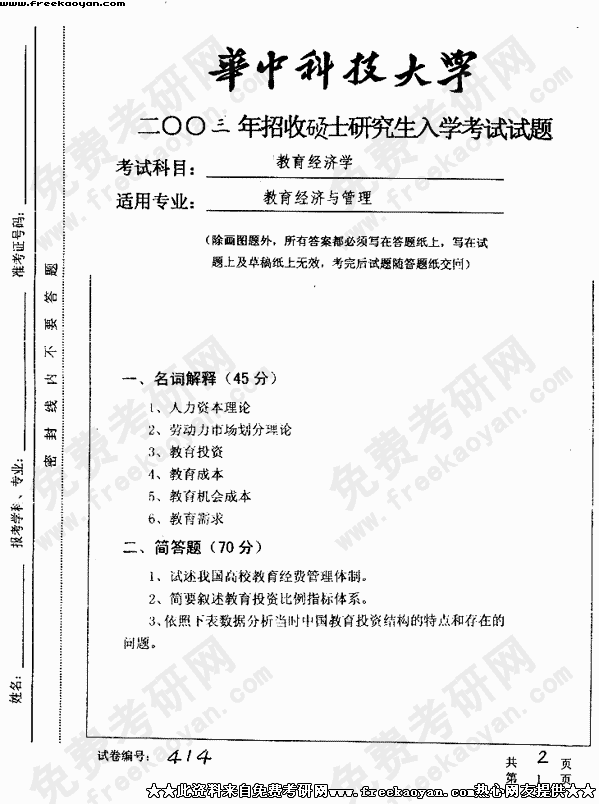 华中科技大学2003年考研真题-日语学基础与日语写作