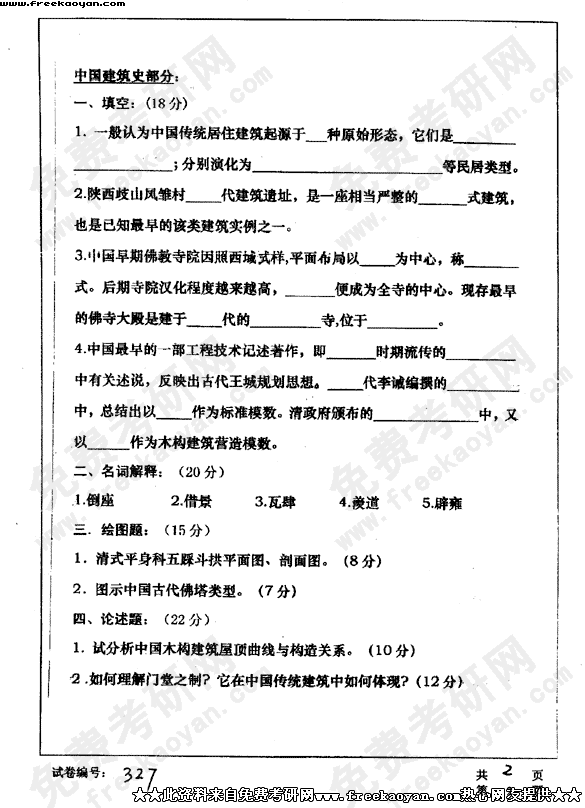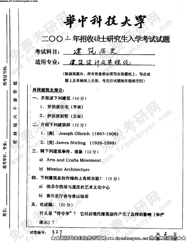 华中科技大学2003年考研真题-建筑历史