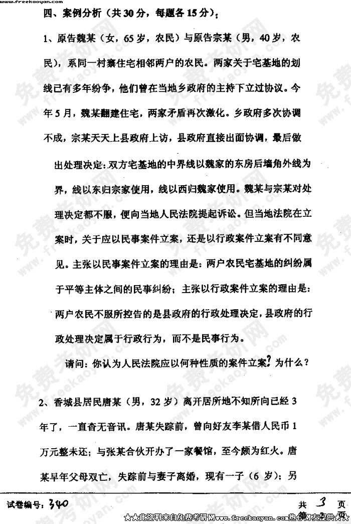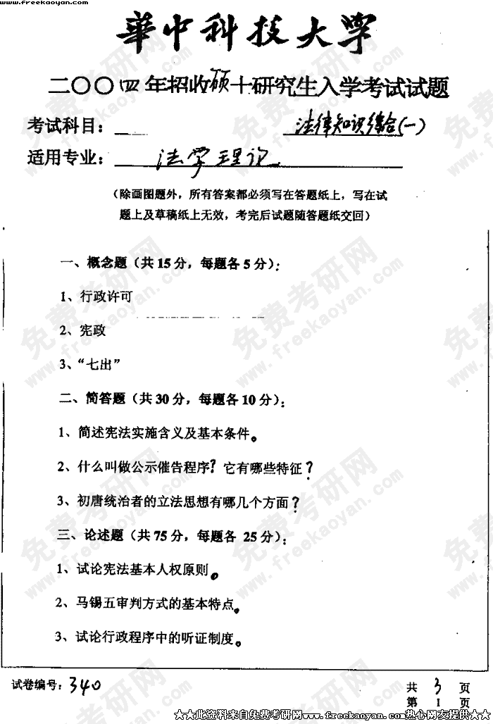 华中科技大学2004年考研真题-法学知识综合(一)试题