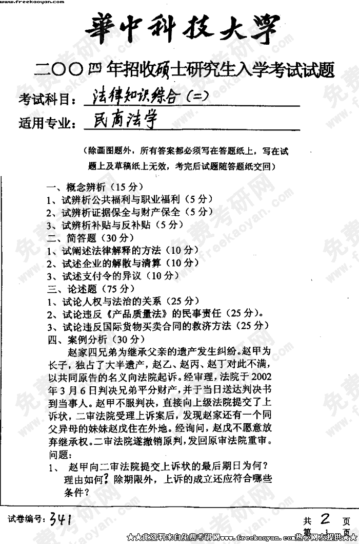 华中科技大学2004年考研真题-法律知识综合(二)试题