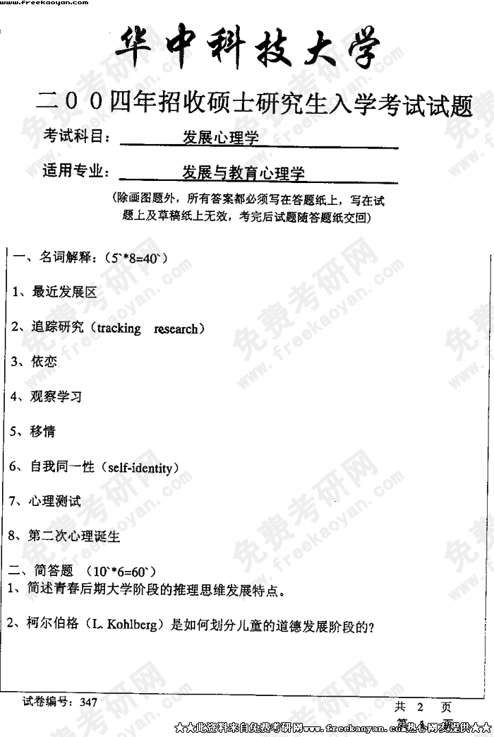 华中科技大学2004年考研真题-法律知识综合(二)试题