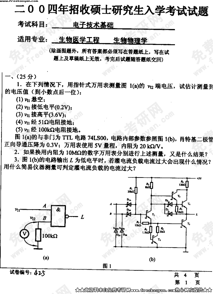华中科技大学2004年考研真题-电子技术基础试题C