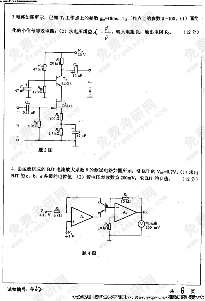 华中科技大学2004年考研真题-电子技术基础试题B