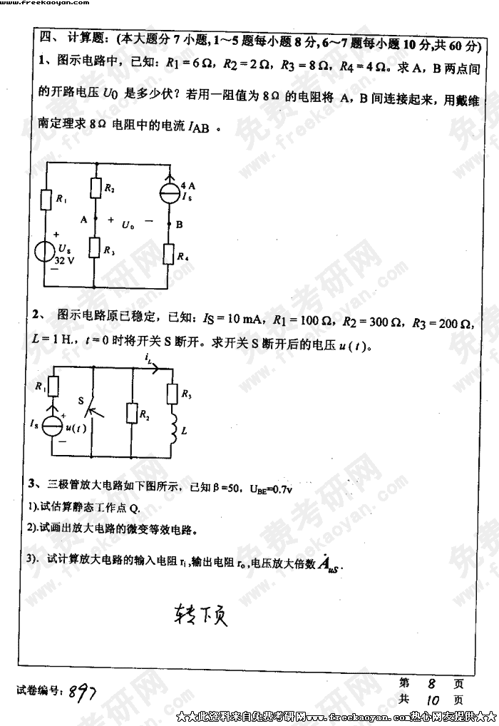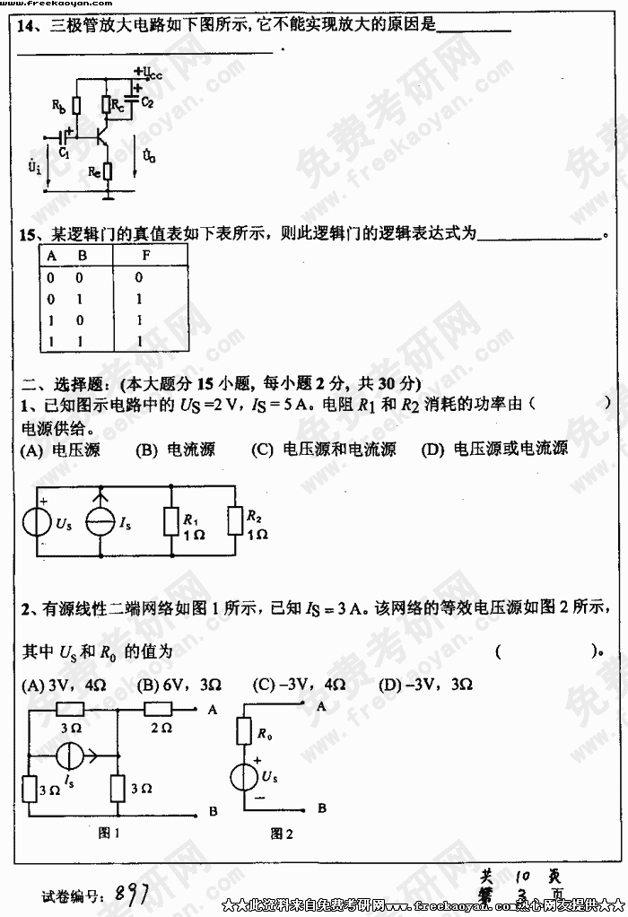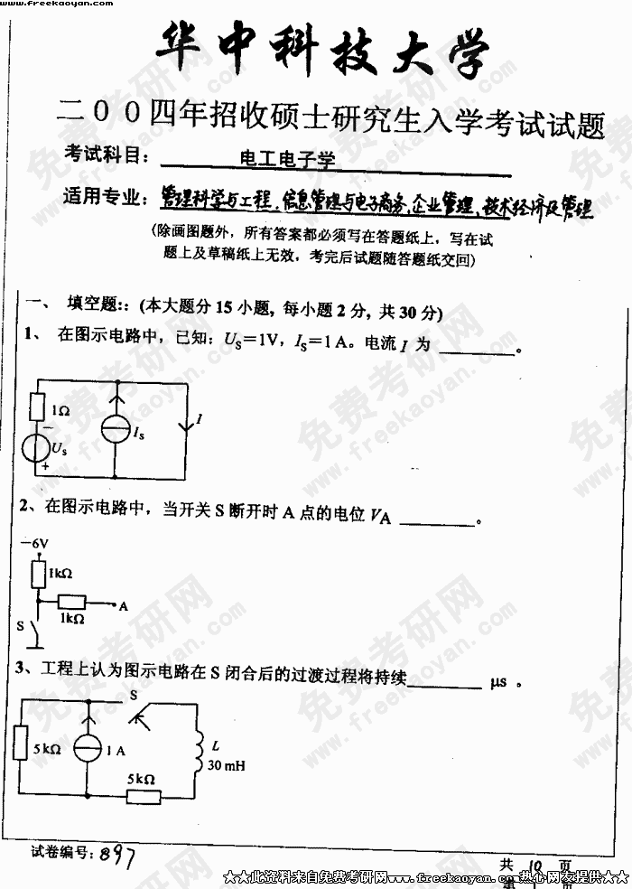 华中科技大学2004年考研真题-电工电子学