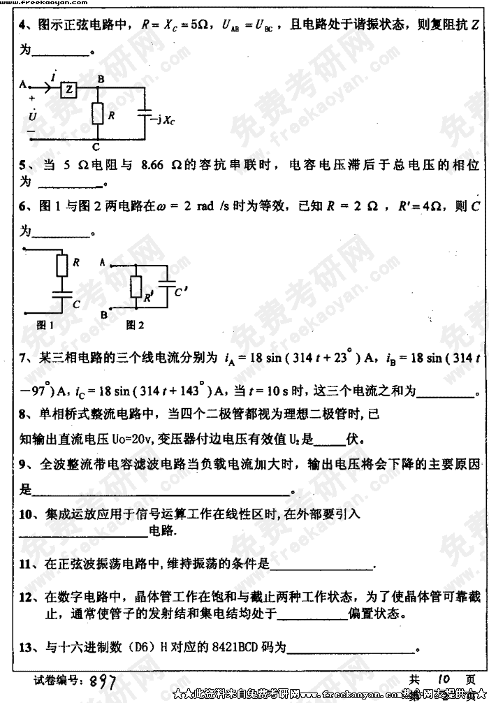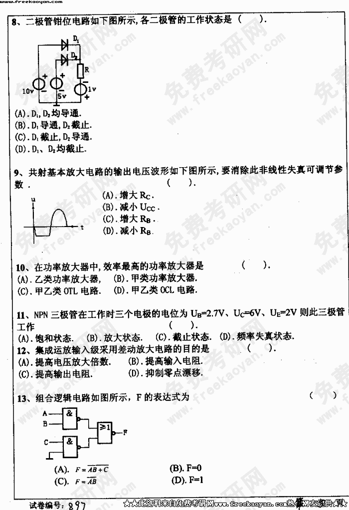 华中科技大学2004年考研真题-电子技术基础试题B
