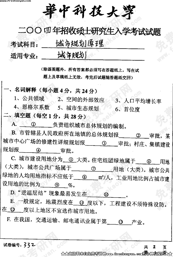 华中科技大学2004年考研真题-法律知识综合(二)试题