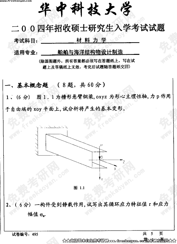 华中科技大学2004年考研真题-电磁场与电磁波试题