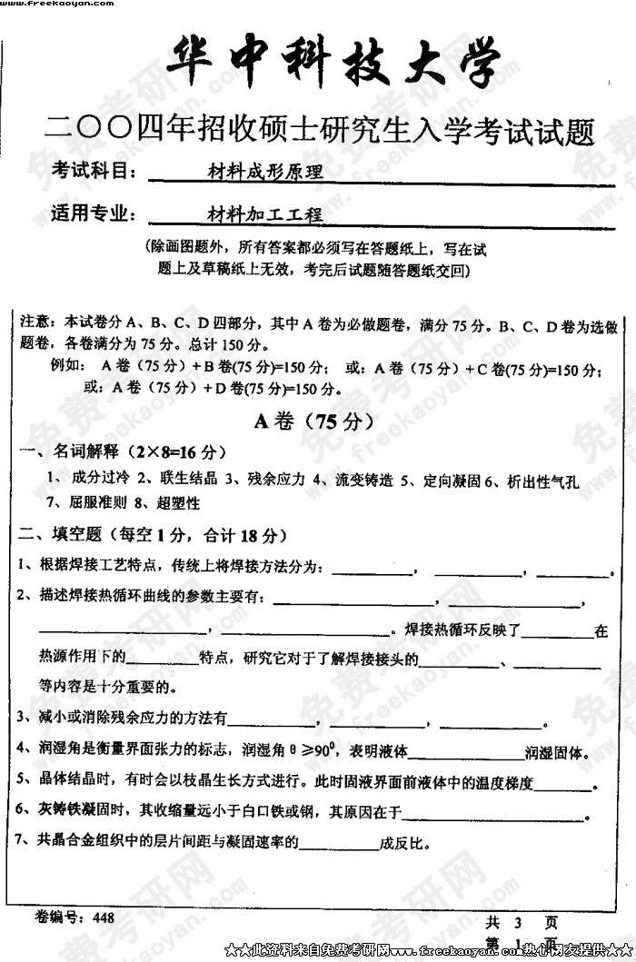 华中科技大学2004年考研真题-电站锅炉原理试题