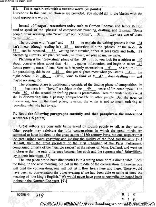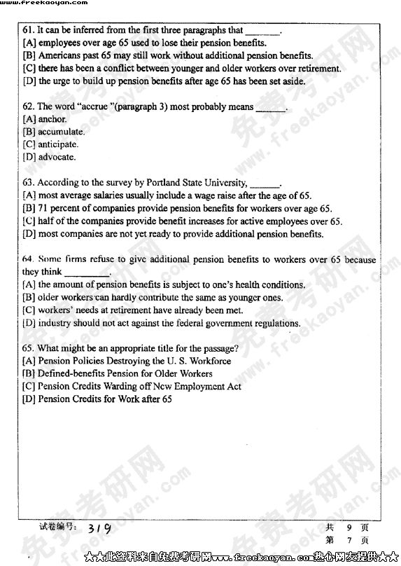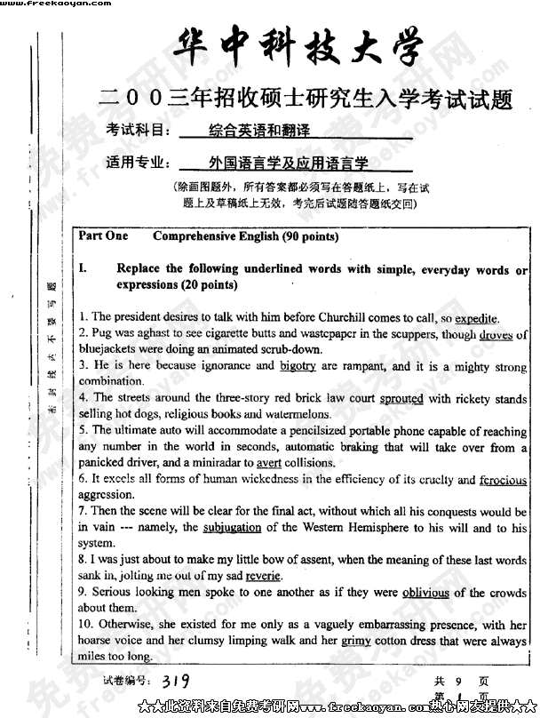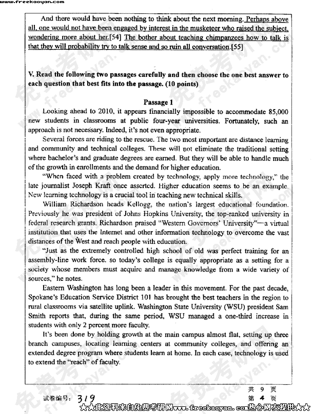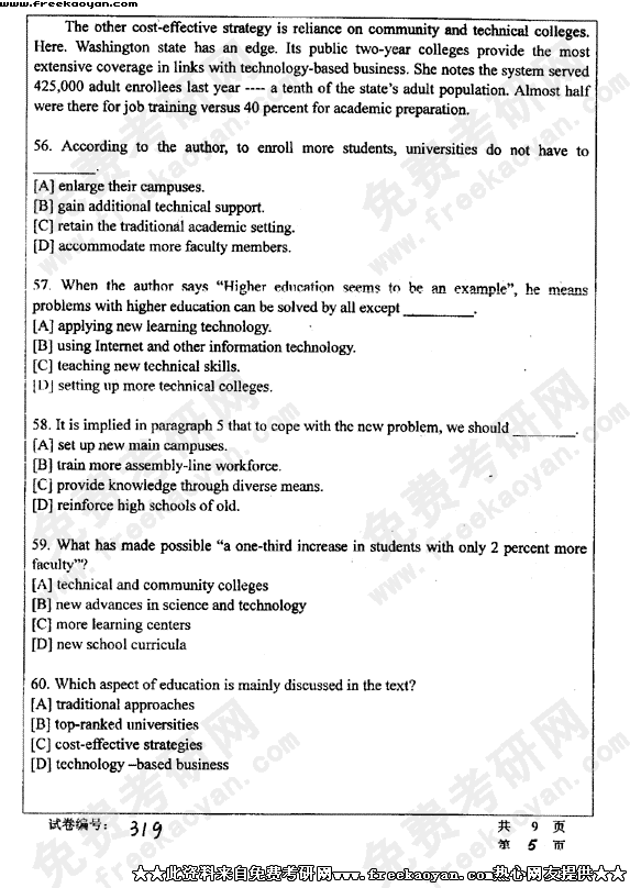 华中科技大学2004年考研真题-MBA入学联考英语试题