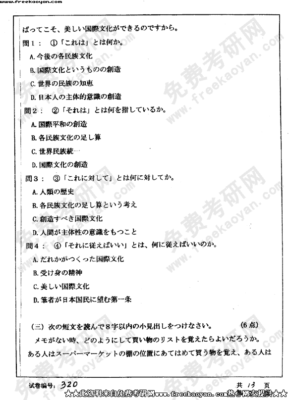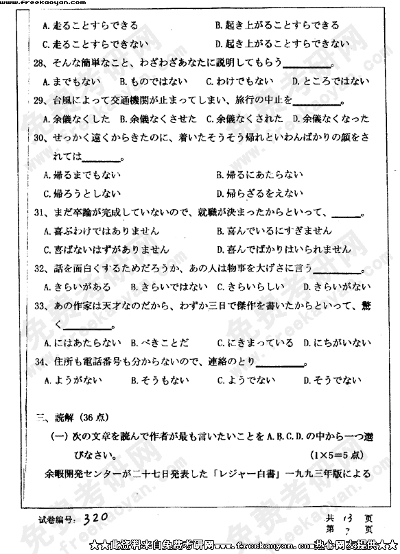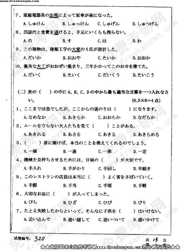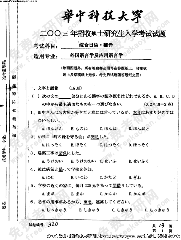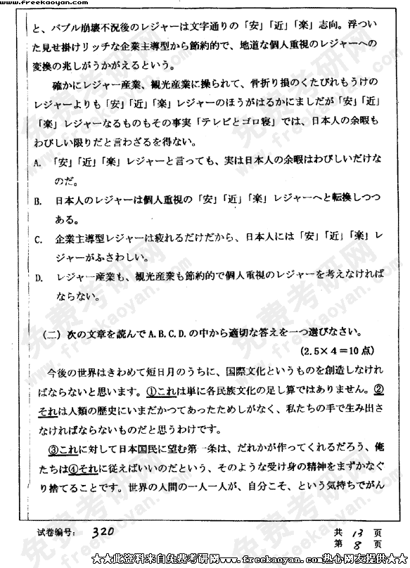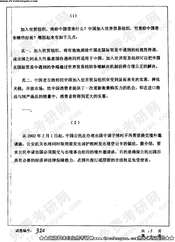 华中科技大学2004年考研真题-MBA入学联考英语试题