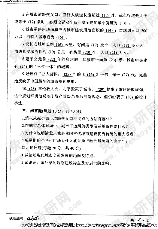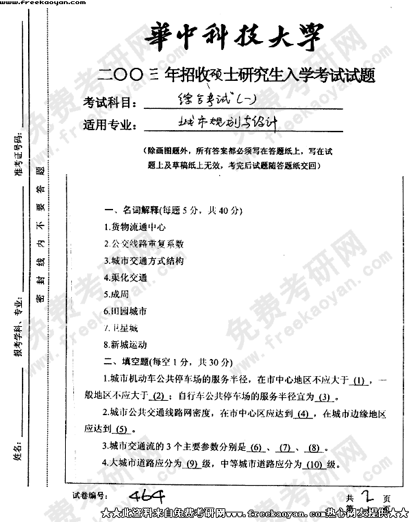 华中科技大学2003年考研真题-综合考试一(城市规划与设计)