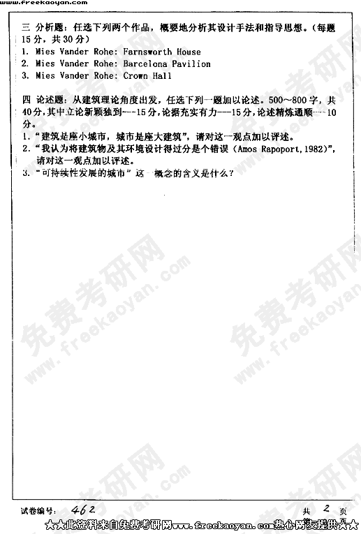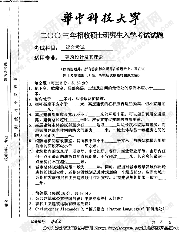 华中科技大学2003年考研真题-综合考试(建筑设计及其理论)