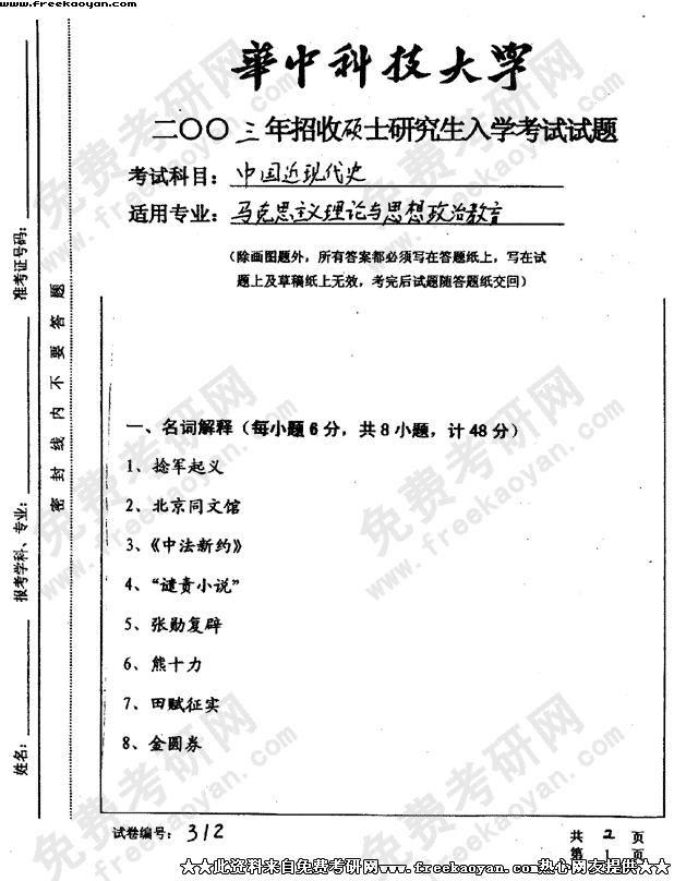 华中科技大学2003年考研真题-综合考试(管理科学与工程、会计学、企业管理、技术经济与管理)