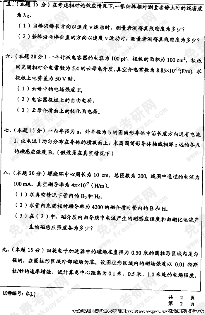 华中科技大学2003年考研真题-专业基础综合课(物理电子学)