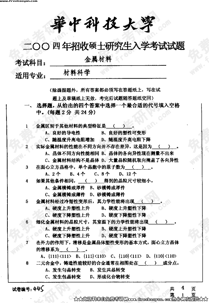 华中科技大学2003年考研真题-专业基础综合课(物理电子学)