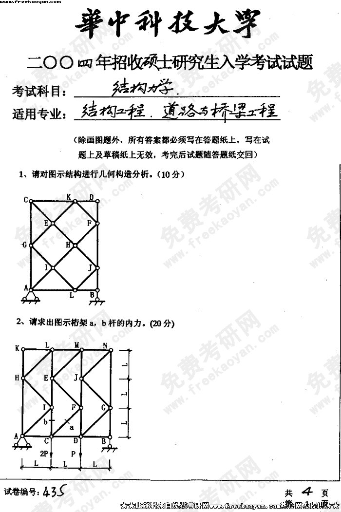 华中科技大学2003年考研真题-专业基础综合课(光学工程、物理电子学)