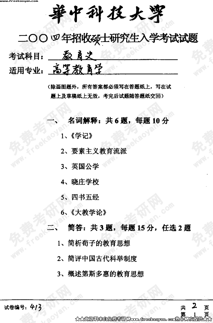 华中科技大学2003年考研真题-专业基础综合课(光学工程、物理电子学)