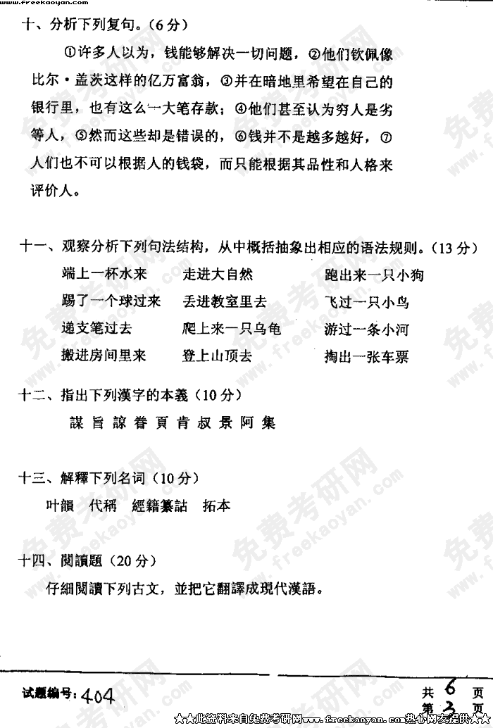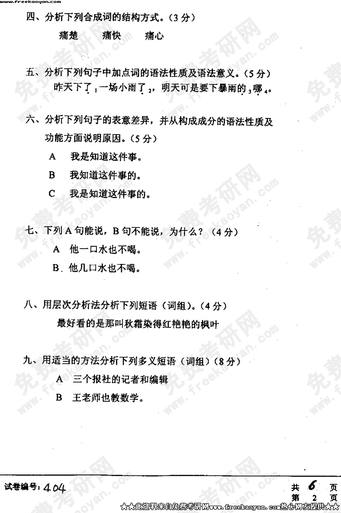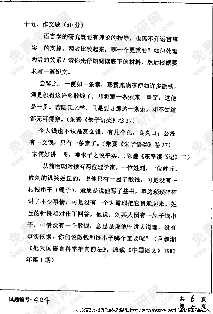 华中科技大学2004年考研真题-汉语言文字及写作试题