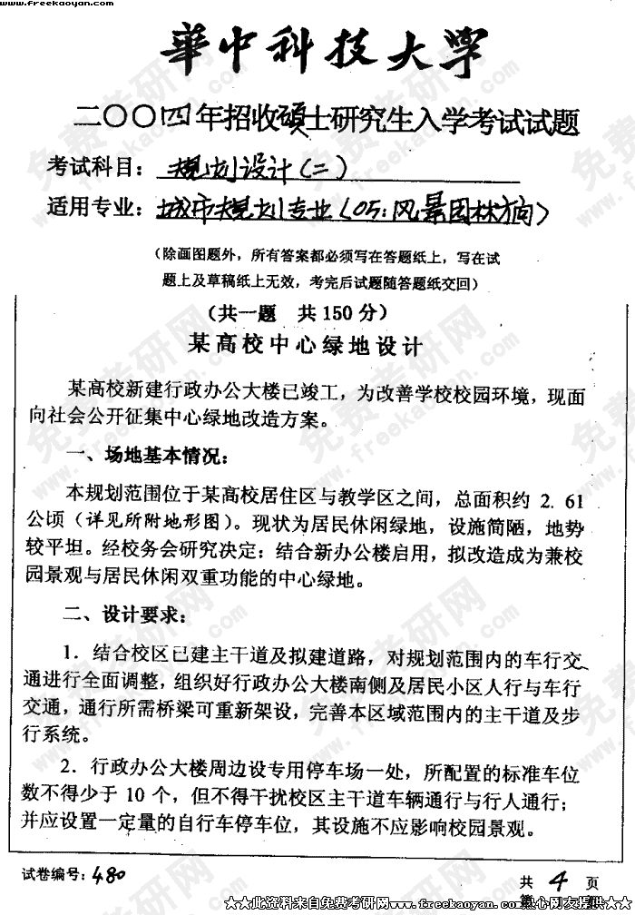 华中科技大学2004年考研真题-建筑设计一(建筑设计及其理论)