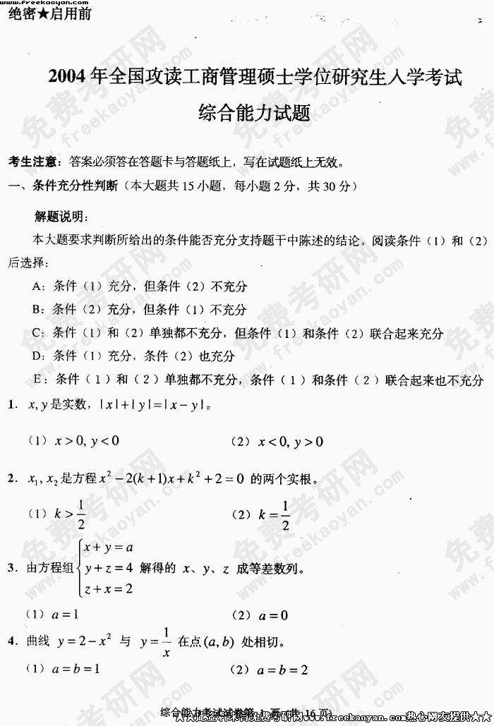 华中科技大学2004年考研真题-工商管理(综合能力试题)