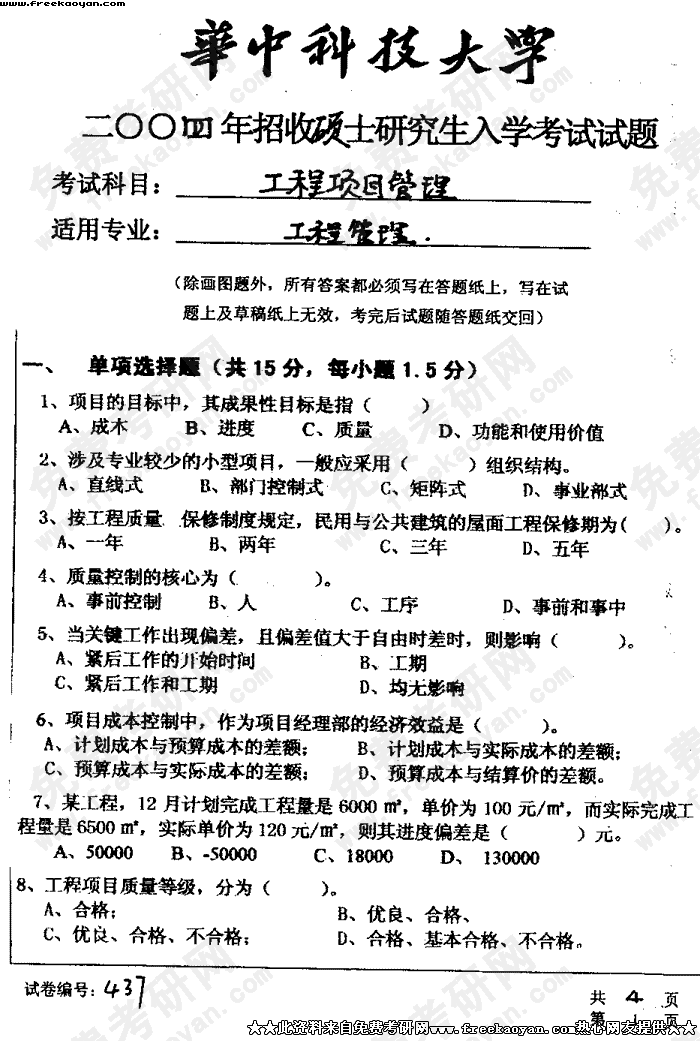 华中科技大学2004年考研真题-工商管理硕士管理试题