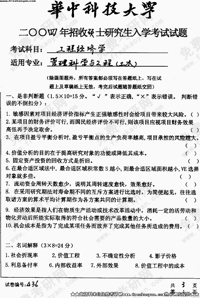 华中科技大学2004年考研真题-工商管理硕士管理试题
