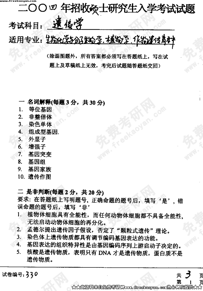 华中科技大学2004年考研真题-分析化学试卷(环境)