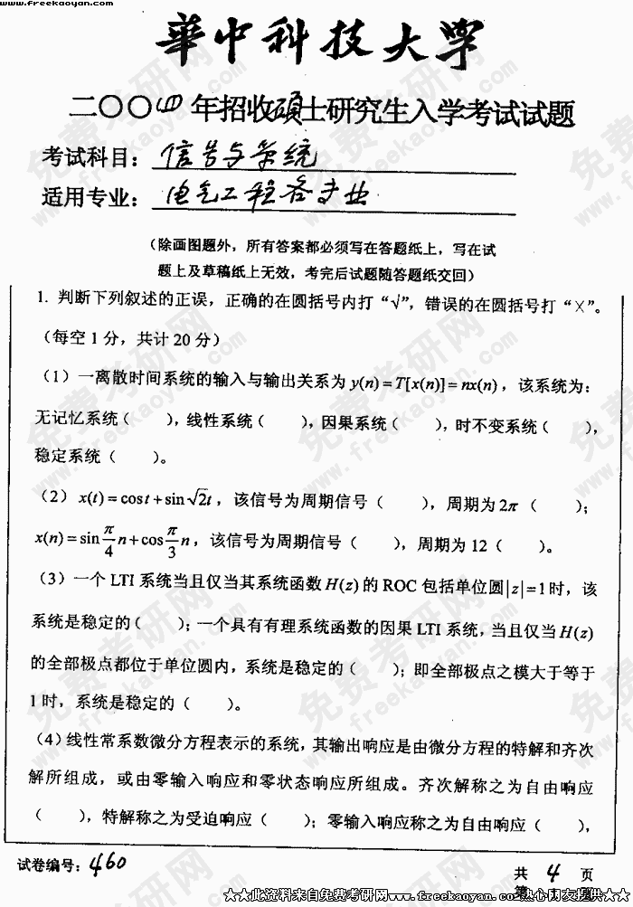 华中科技大学2004年考研真题-分析化学试卷(环境)