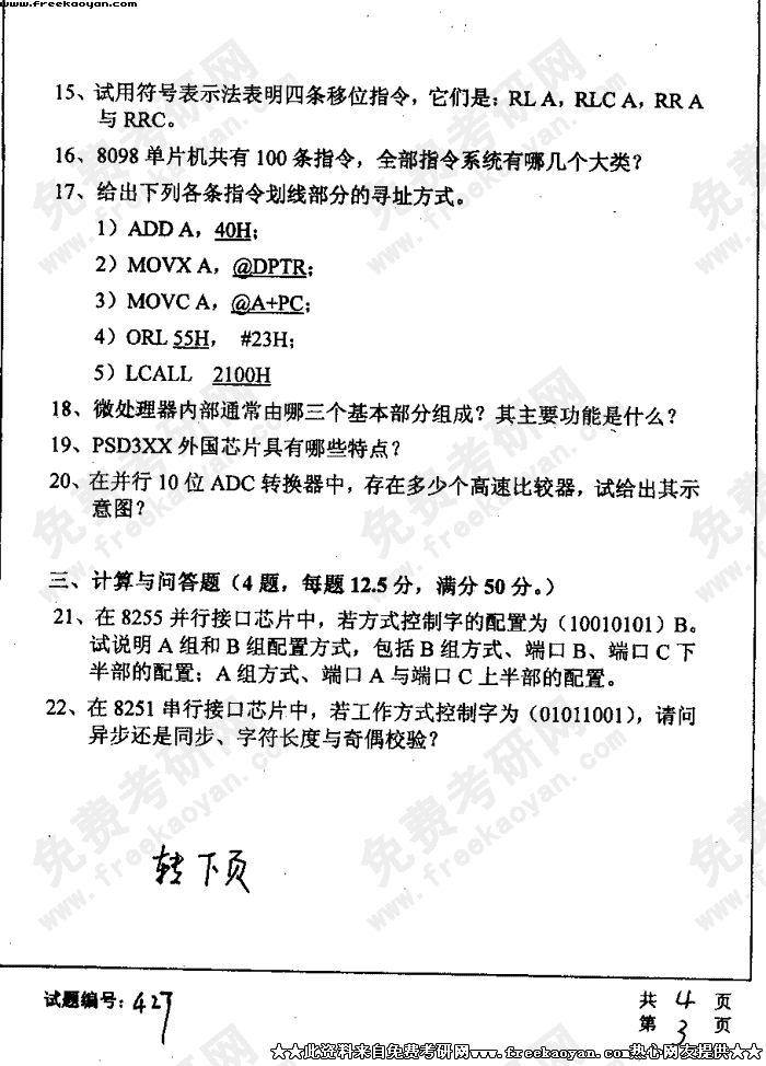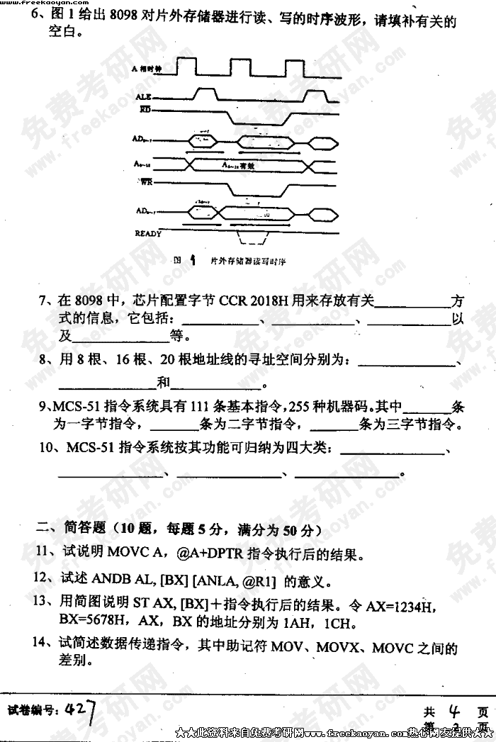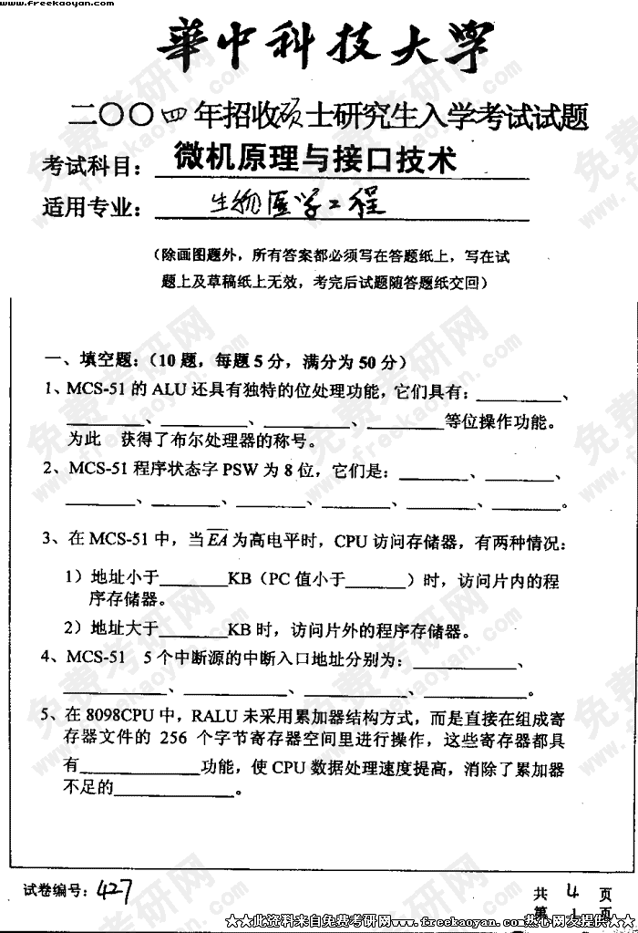 华中科技大学2004年考研真题-微机原理与接口技术试题