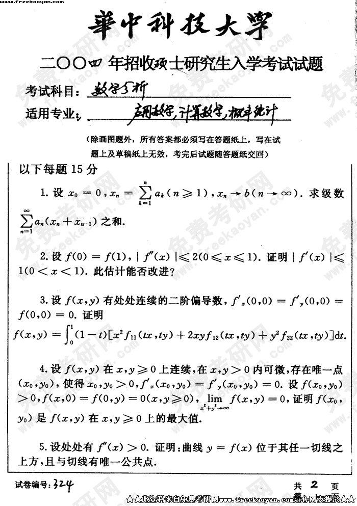 华中科技大学2004年考研真题-微机原理与接口技术试题