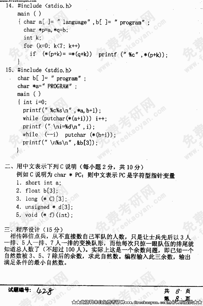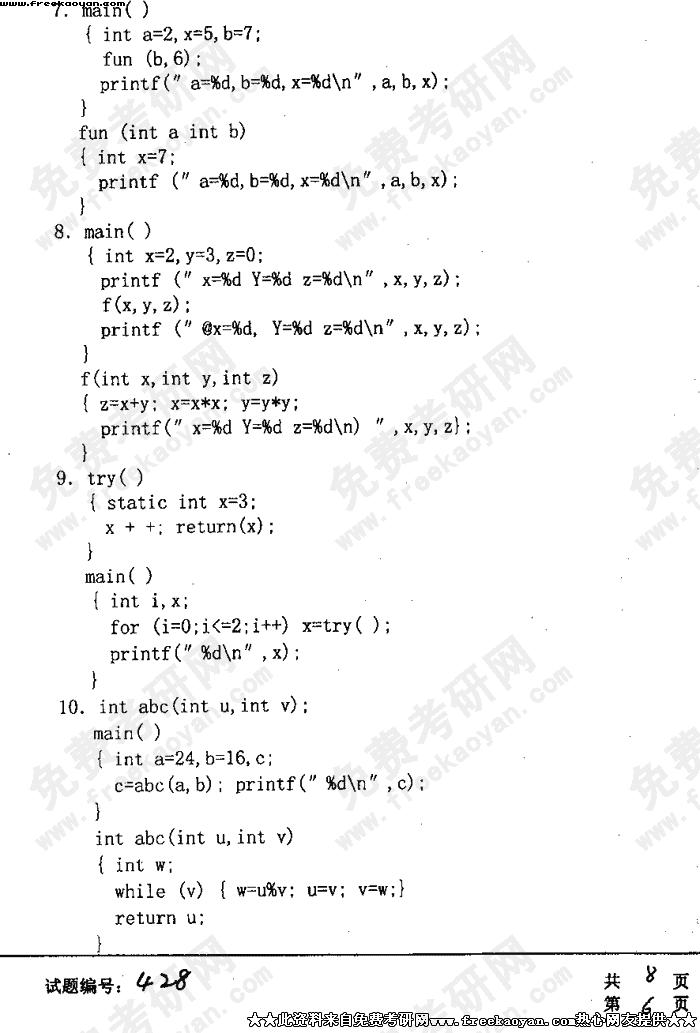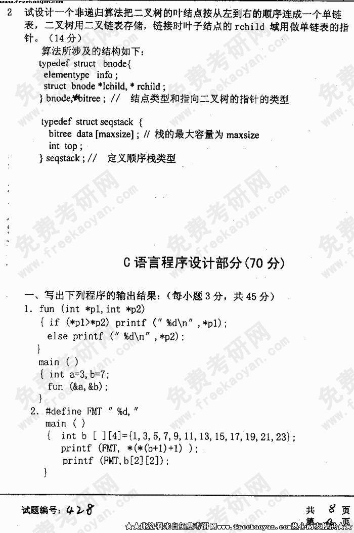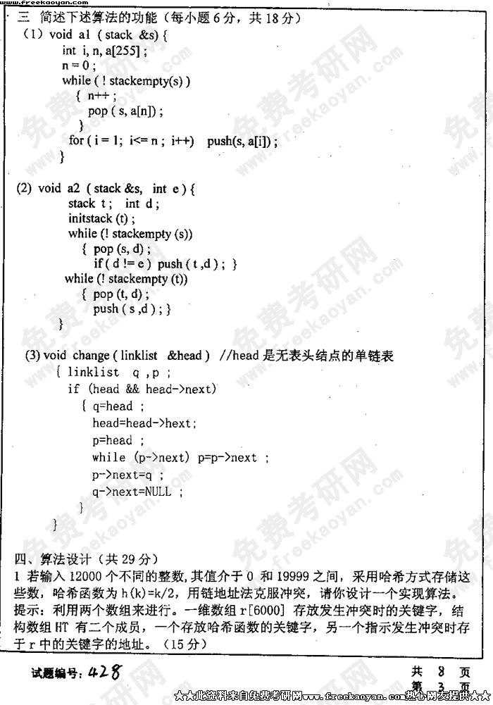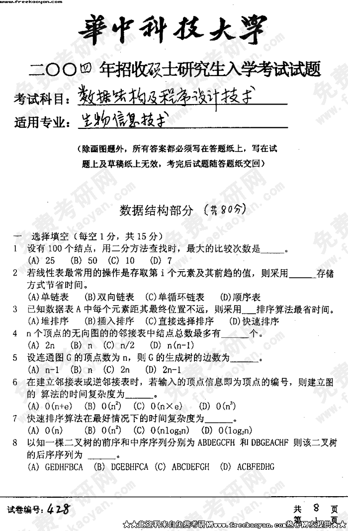 华中科技大学2004年考研真题-数据结构及程序设计技术试题