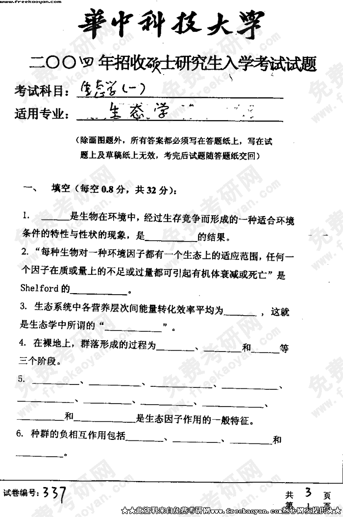 华中科技大学2004年考研真题-生物化学与分子生物学试题