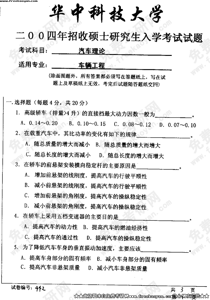 华中科技大学2004年考研真题-数据结构及程序设计技术试题