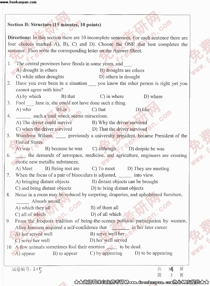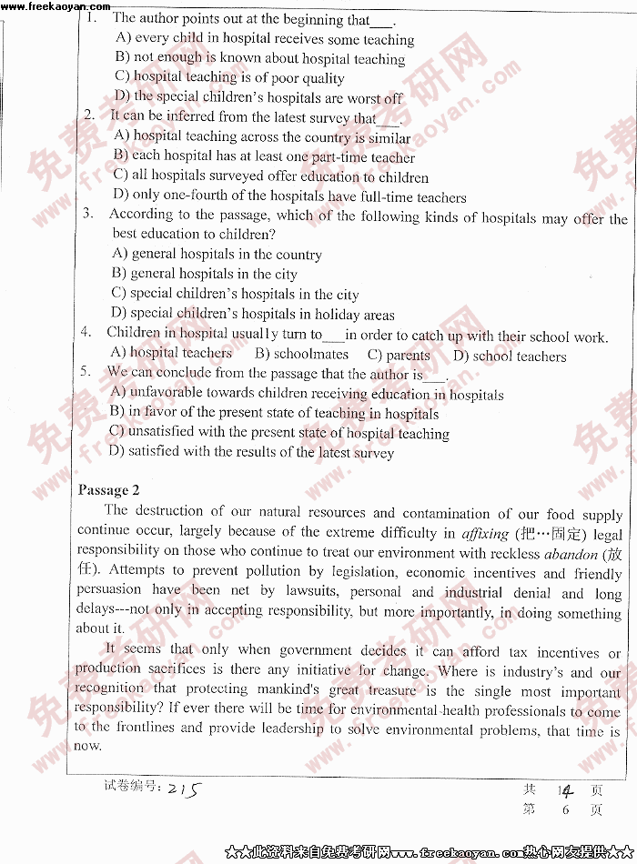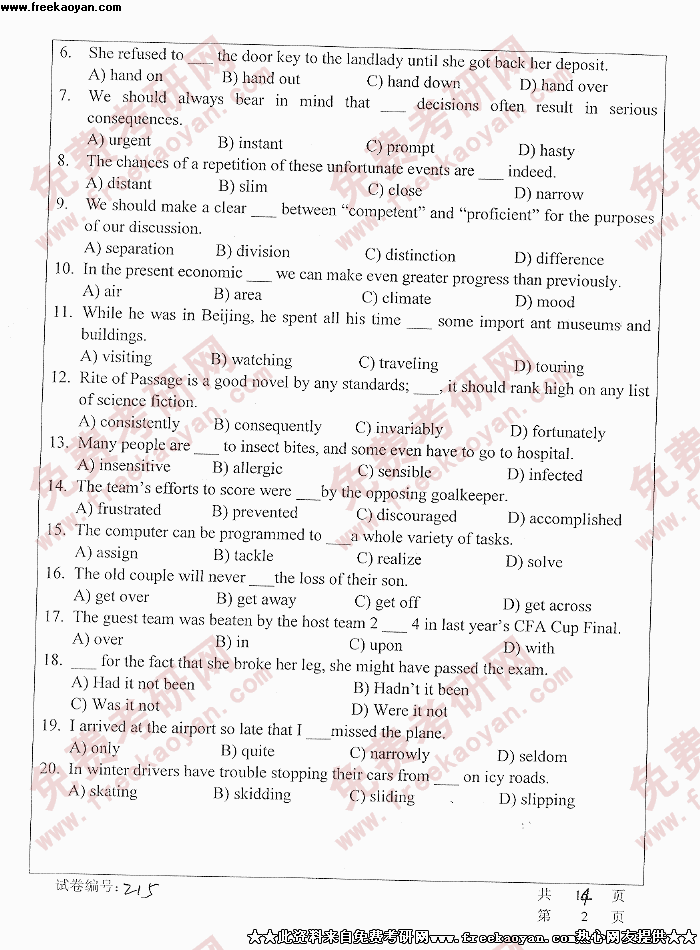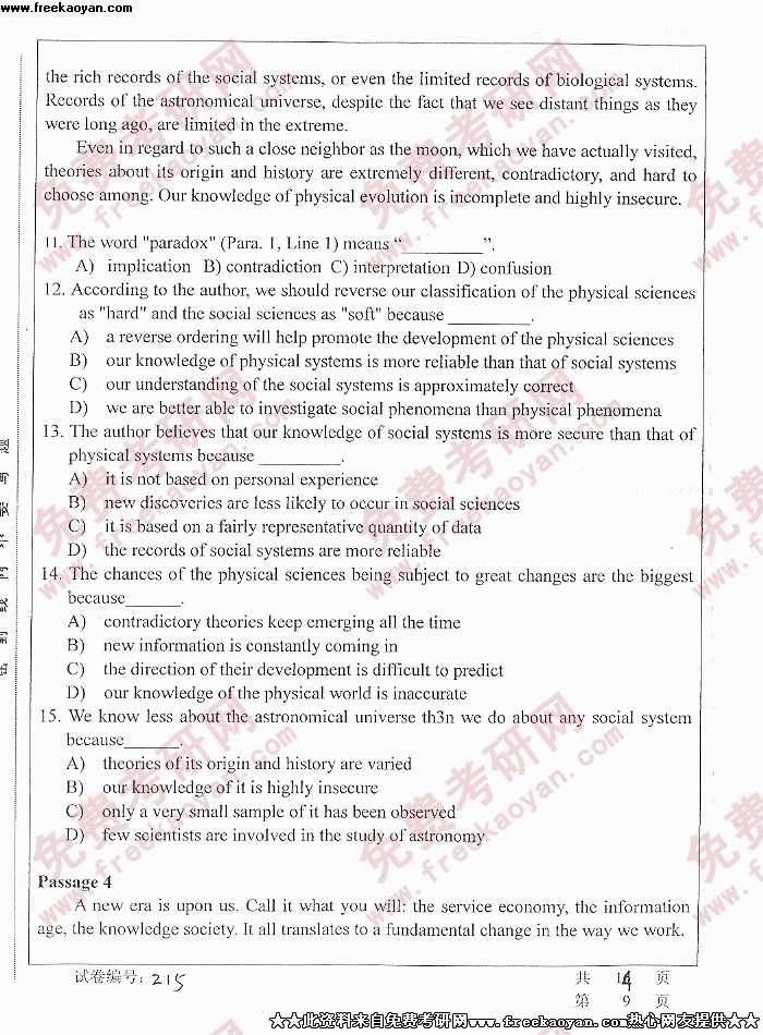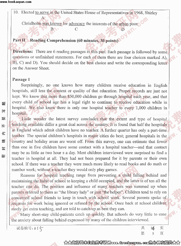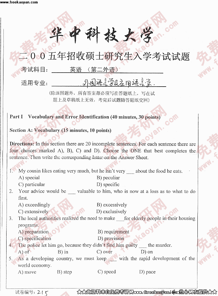 华中科技大学2005年考研真题-英语(第二外语)(外国语言学)