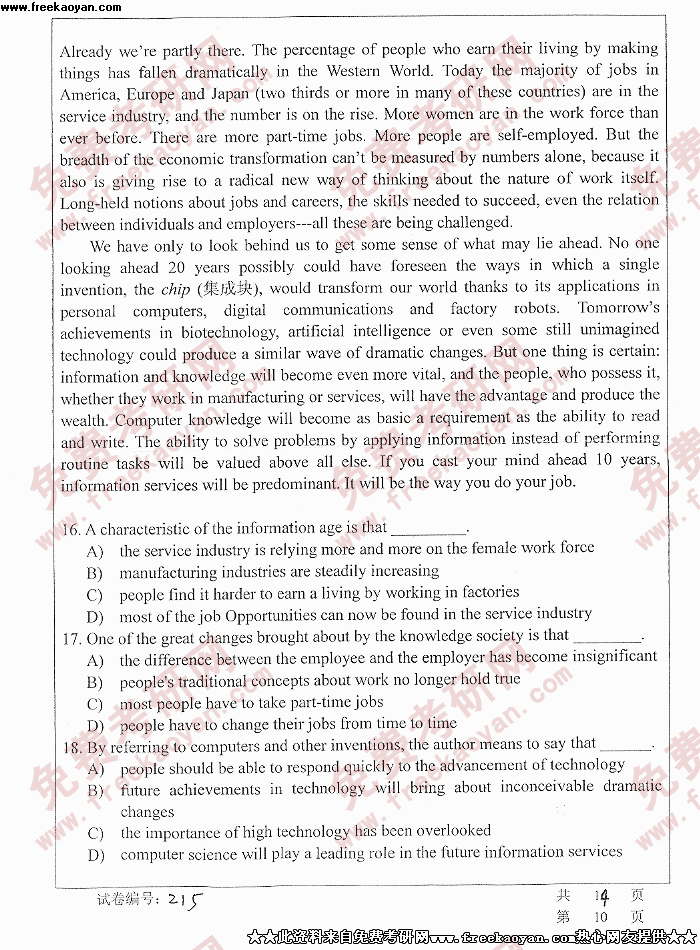 华中科技大学2004年考研真题-日语写作与日语互译试题
