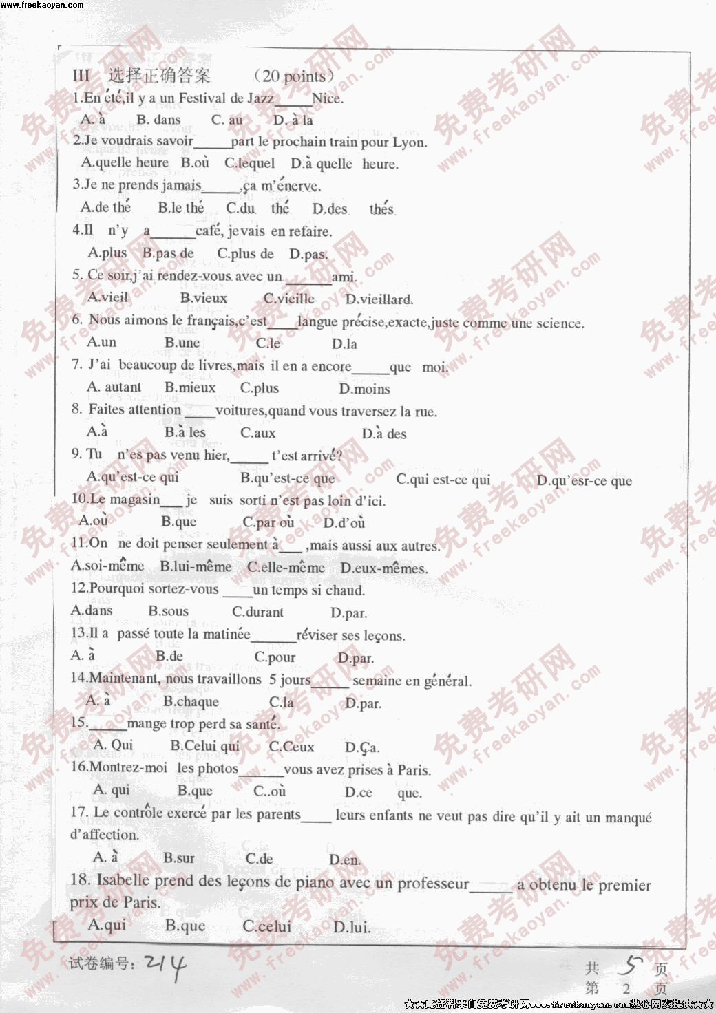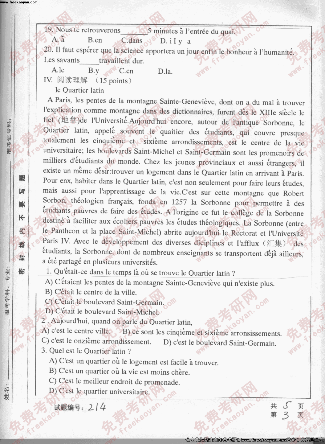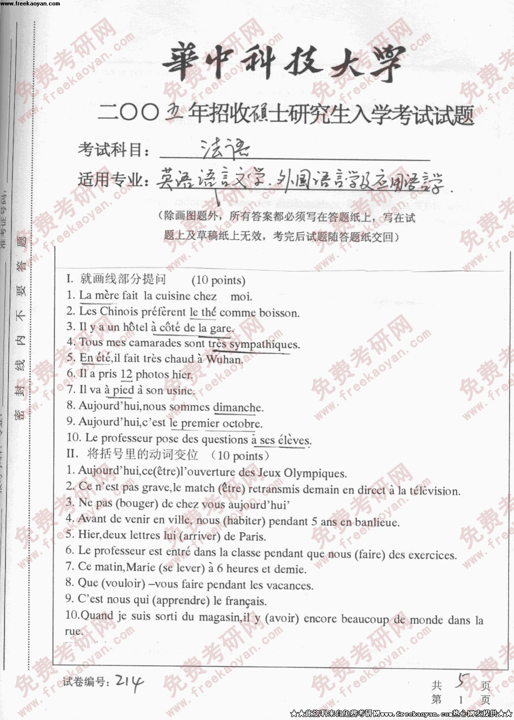 华中科技大学2005年考研真题-英语(第二外语)(外国语言学)