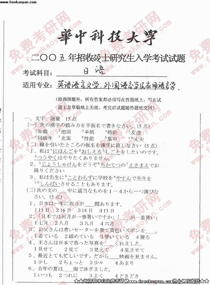 华中科技大学2005年考研真题-日语(外国语言学)