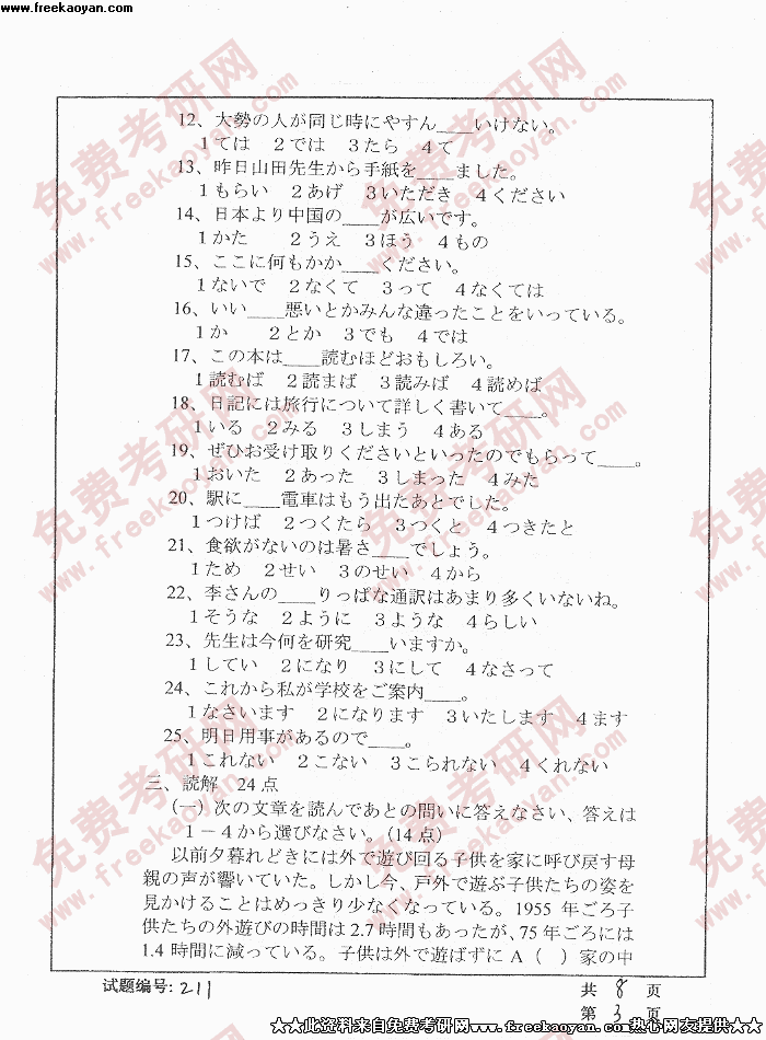 华中科技大学2004年考研真题-日语试题