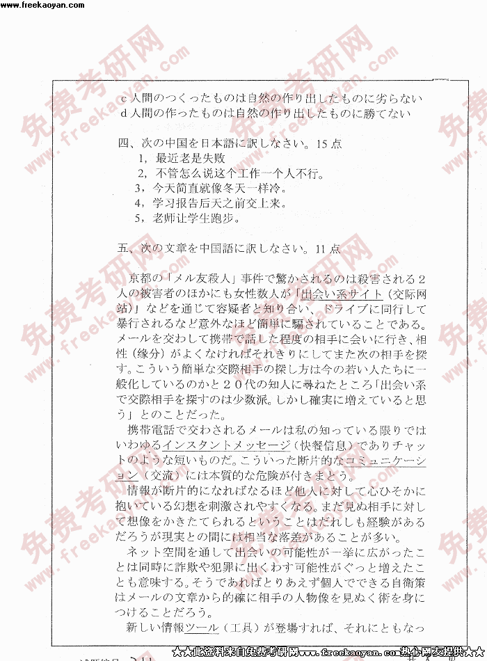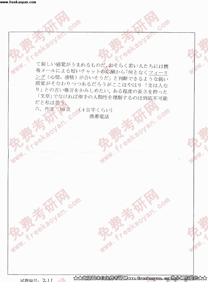 华中科技大学2004年考研真题-日语写作与日语互译试题