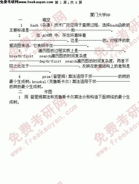 相关话题/考研真题 厦门大学 数据结构 计算机
