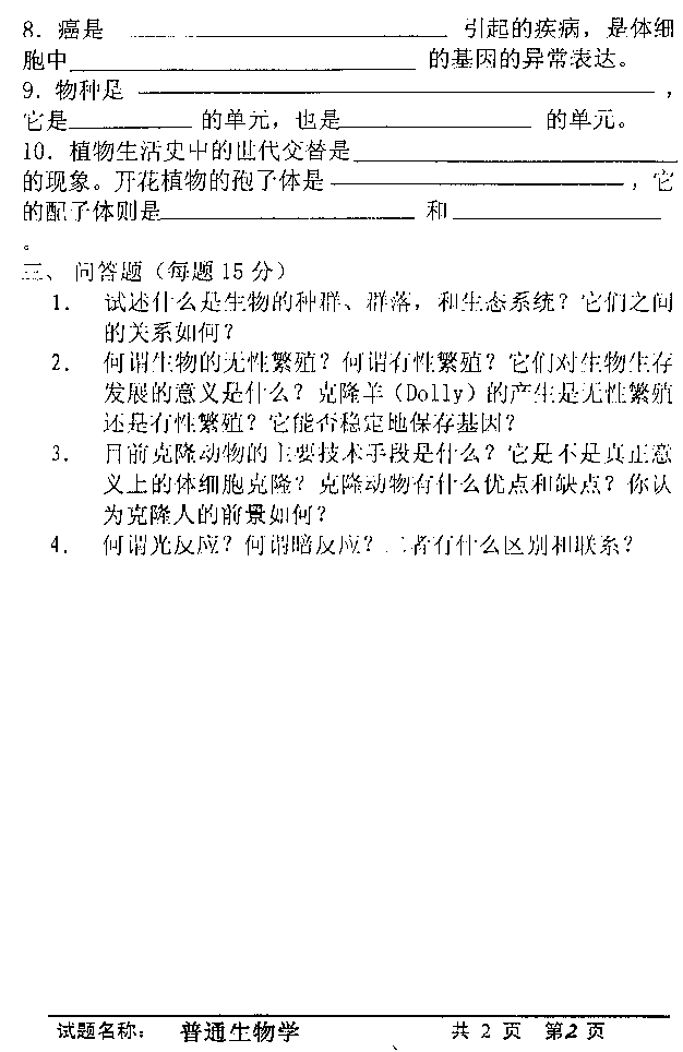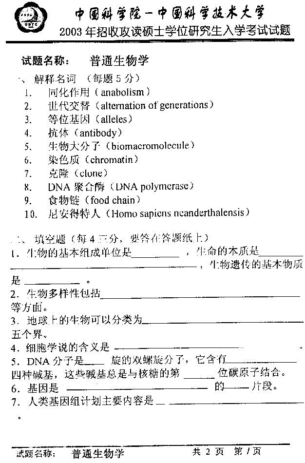 厦门大学2003年普通生物学考研试题 一、辨别下列各题的是非,正确者以“√”表示,错误者以“×”表示,请将答案写在答题纸上。每题1分,共24分。1、人的唾液中含有少量的脂肪酶。2、老年人之所以摔倒后容易骨折,是由于他们骨膜中的无机物所占比例较大。3、人类基因组计划的主要目标就是搞清楚人类到底有多少 ...