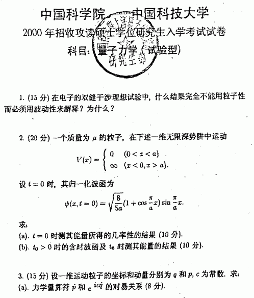 中国科学技术大学2000年考研真题-量子力学(实验型)