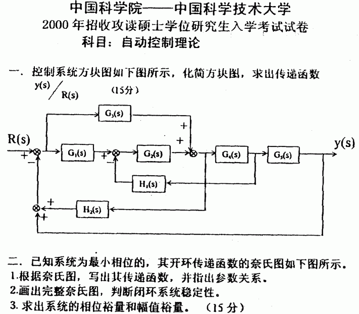 相关话题/中国科学技术大学 考研真题 自动控制理论