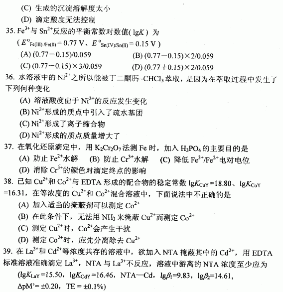 专业课考研经验 本站小编 FreeKaoyan 2018-01-22中国科学技术大学2000年考研真题-分析化学B
