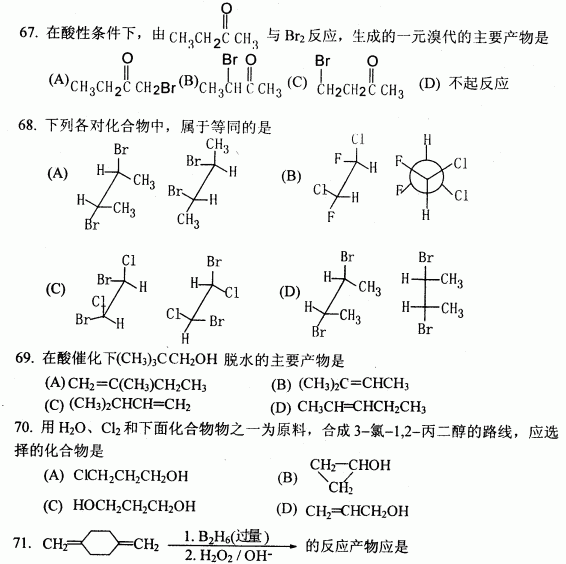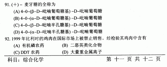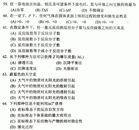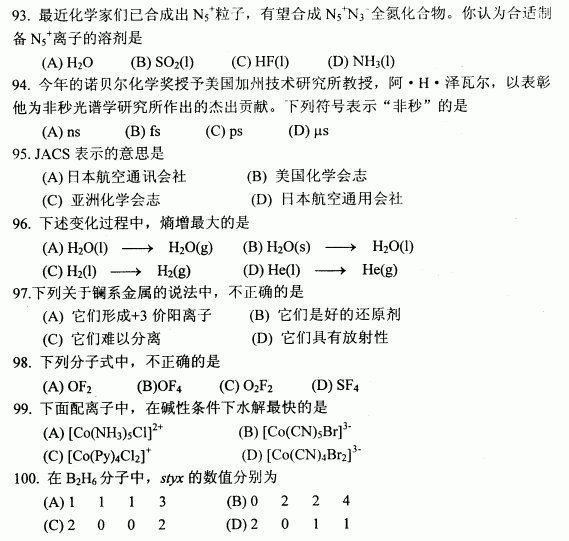 中国科学技术大学2000年考研真题-综合化学第一部分